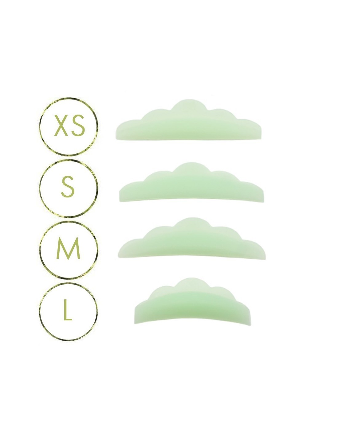 Available in four different sizes: Extra Small, Small, Medium, Large. Based on the natural length of the lashes and the desired final effect.