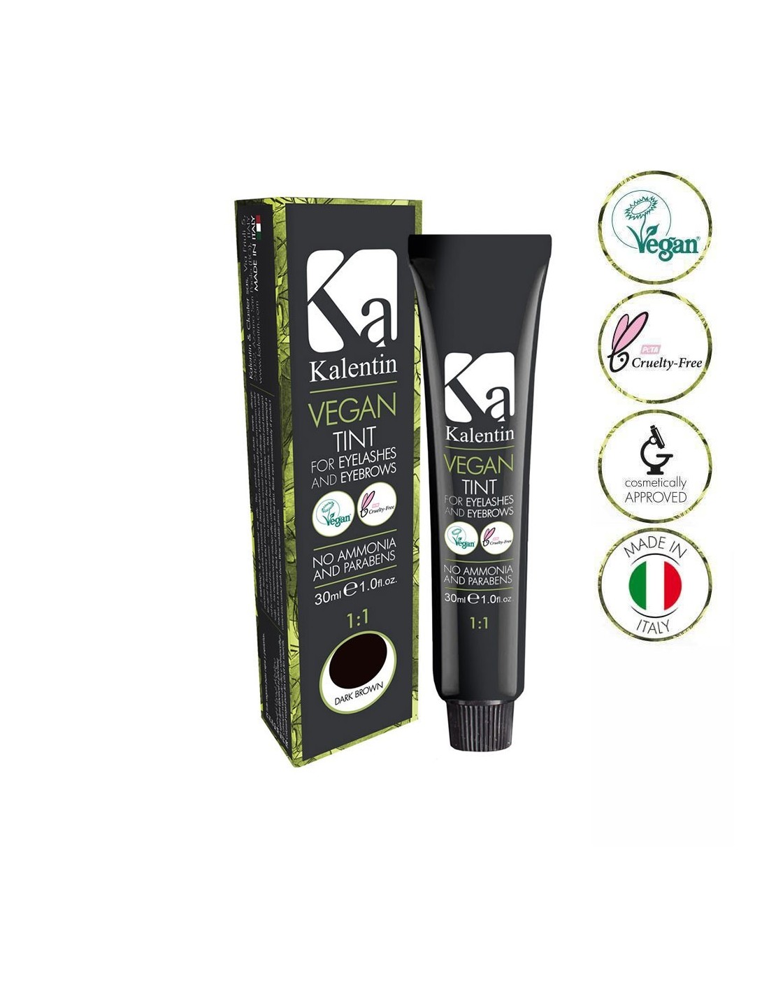 Formulated for both eyelashes and eyebrows, the Kalentin Vegan lash and brow tint range comes in 5 super-pigmented shades, registered with the Vegan Society.