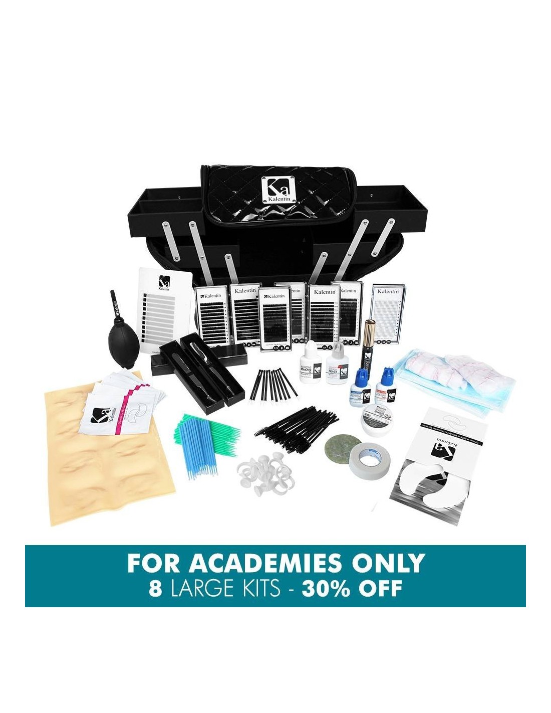 Volume Pack - Full Head, Practice Lash Strips and Volume Easy To Fan Eyelash Extensions 0.07 B Curl, Mix Tray.