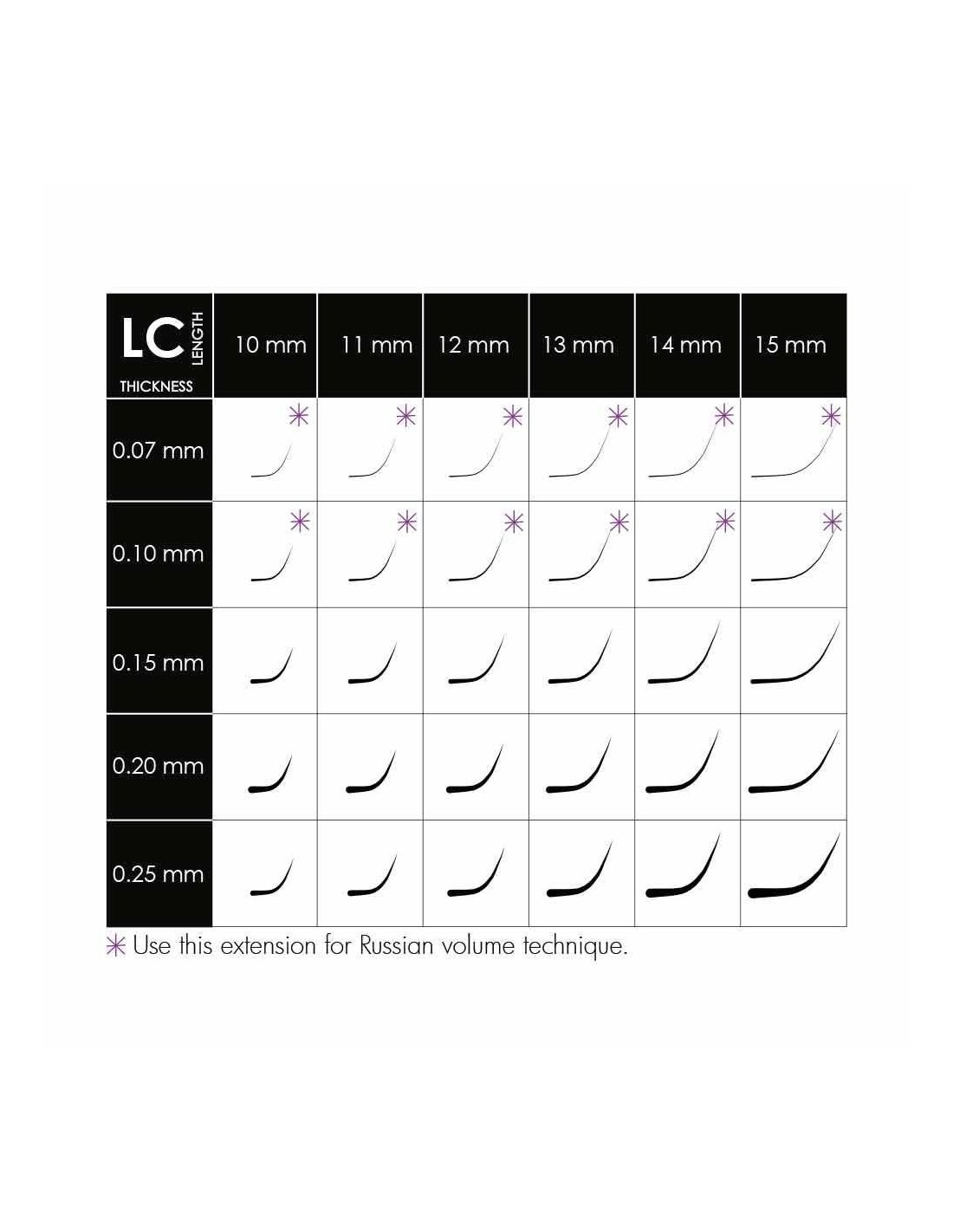 LC mix box classic eyelash extensions are particularly useful for clients with downward growing natural lashes. They attach to your clients lashes with an up turn at the end of the lashes giving an eye opening effect to the clients lash line.