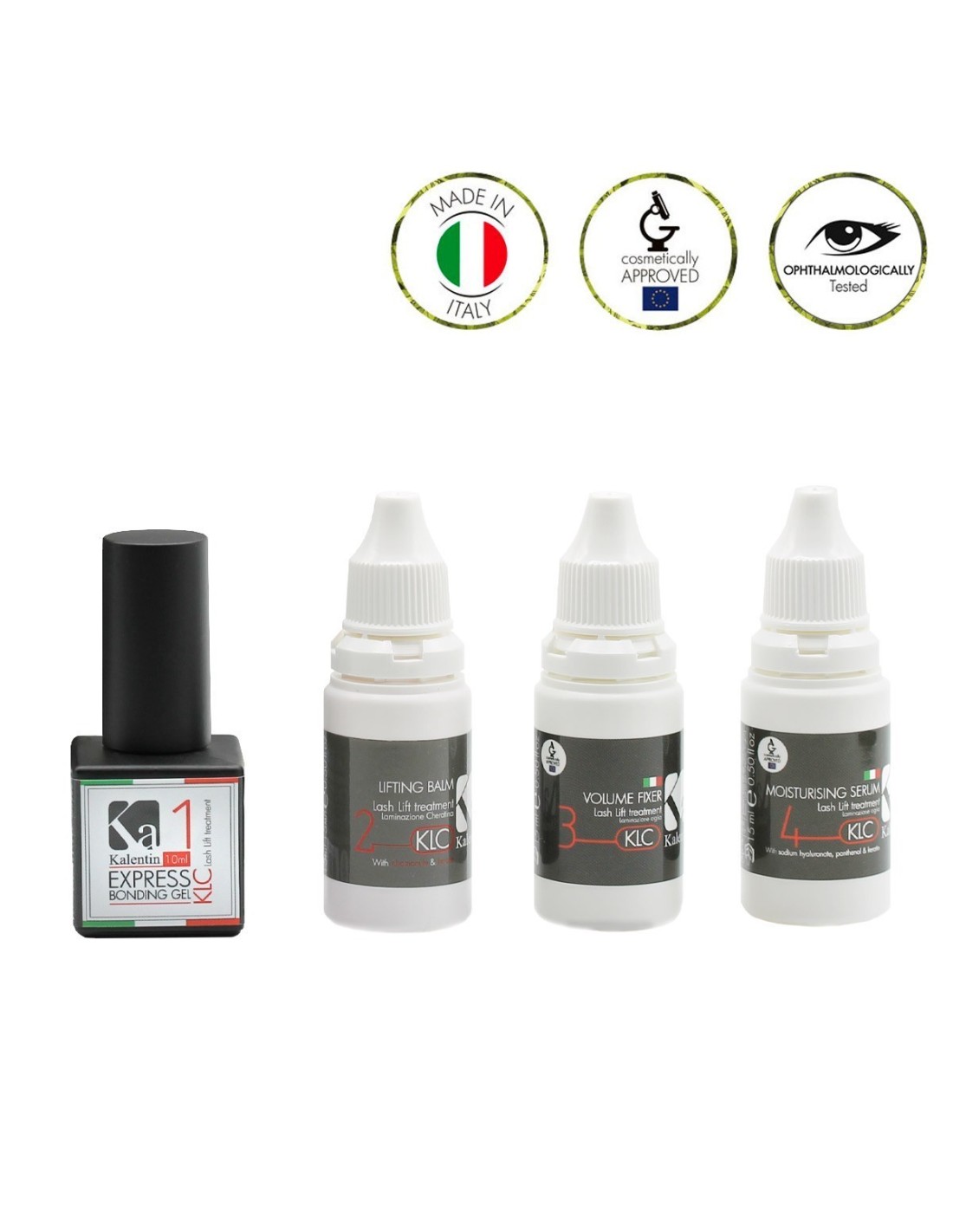 Kalentin MOISTURISING SERUM represents the 4th and last stage of the lash lift treatment.  It's a dual action product. It is used both to remove the residues of "Bonding Gel" from natural lashes and skin.  Hyaluronic Acid, Panthenol, and Keratin have a volumizing, nourishing and regenerating action on the eyelashes.